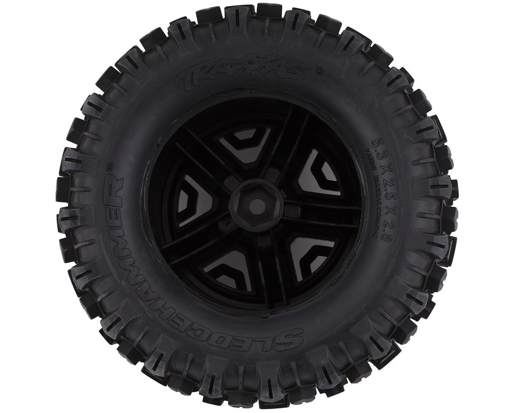 Extreme Terrain Traction Sledgehammer extreme-terrain tires provide maximum traction and control on variety of off-road surfaces. The Sledgehammer's tall sidewall and tough 2.8” wheels provide additional ground clearance, while the open block tread design clears mud and debris for unmatched traction in loose surfaces. Sledgehammer tires come mounted and pre-glued with foam inserts for no-hassle, out-of-the-box bolt-on traction. TSM®-rated for high-speed applications.Fits 12 mm hex, 4WD front or rear, 2WD front only.