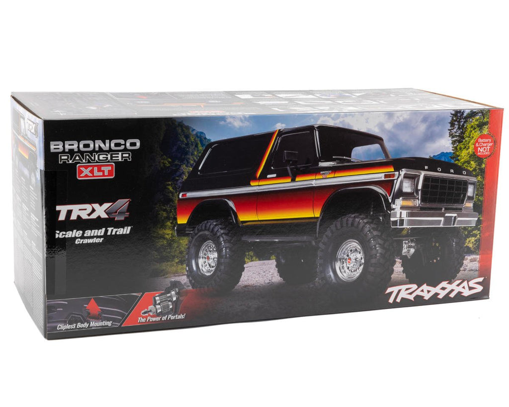 The Traxxas® TRX-4® 1/10 Trail Crawler Truck with the 1979 Bronco Clipless Body captures the spirit of the classic Ford® Bronco® with unmatched detail and performance. Traxxas brings together the retro design of the iconic Bronco with cutting-edge features, making this model a top choice for RC enthusiasts. From its realistic chrome details to advanced crawling technology, this truck is designed to conquer challenging terrain while maintaining the authenticity of its full-size counterpart.