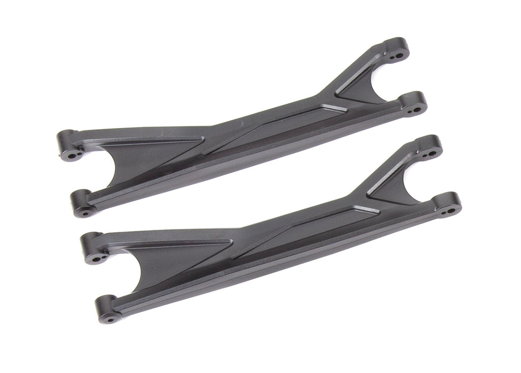 Traxxas X-Maxx WideMaxx Upper Suspension Arms. These suspension arms are intended for the front or rear of the Traxxas X-Maxx when equipped with the optional WideMaxx suspension kit (TRA7895). Made from a strong composite material, these are designed to hold up to the high loads found in off-road bashing. These are available in multiple color options to best match your build. Package includes two upper suspension arms.
