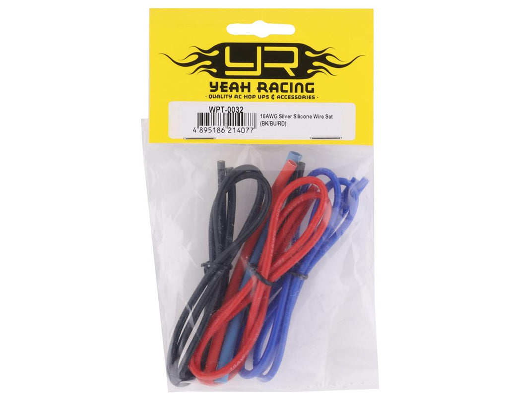 Yeah Racing Silicone Wire Set. Package includes three lengths of wire and three lengths of heat shrink.