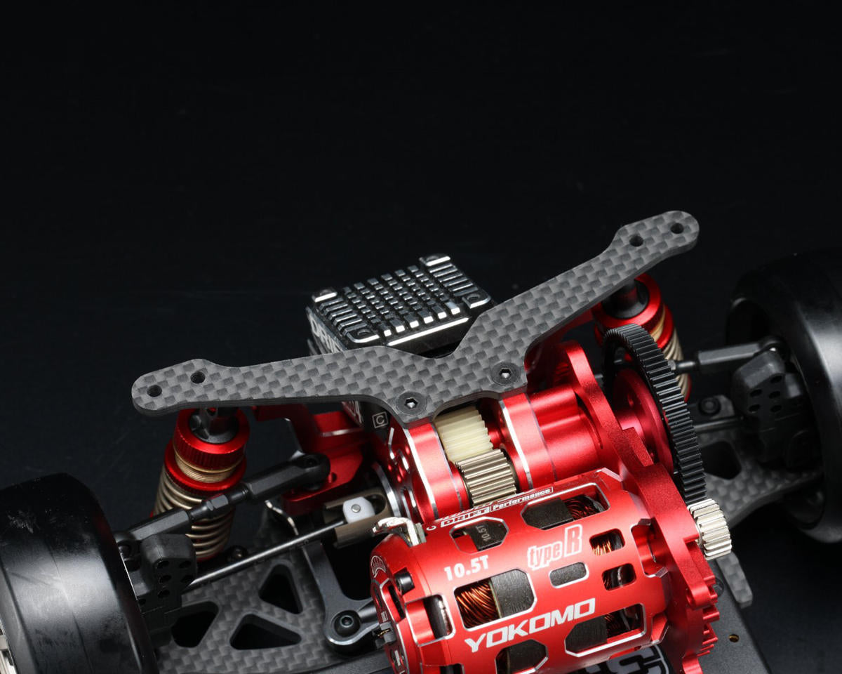 Using graphite suspension arms never used in drift cars before is the first hint that this machine is truly race inspired. Drift cars need adjustability and this MD 1.0 delivers. With a multitude of adjustments consisting of car width, skid angle, roll center camber, toe and more you will have no problem tuning your vehicle to the track conditions. Another feature that Yokomo focused on the transmission. Using a three gear transmission out of the box gives you a positive torque setup helping to plant the rear of the vehicle under power. As an option, Yokomo has given you the ability to convert to a more neutral four gear transmission setup again allowing you to tune for any track conditions. Packed with features and adjustments it is easy to see why they call this the "Master Drift".