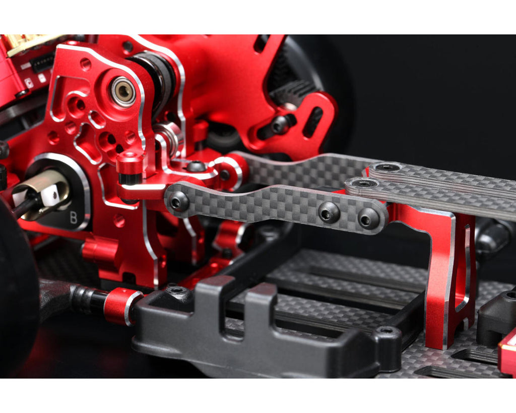 Adaptability is at the heart of the MD3.0. Its H-arm style suspension with pin-type mounts allows for compatibility with traditional A-arm systems from earlier MD platforms. This flexible design lets drivers tune their setup to match track surfaces, driving style, or personal preference. The kit comes with durable resin arms, with graphite upgradesavailable for even greater precision and responsiveness. Yokomo has also designed the chassis to accommodate future optional parts, making it a long-term performance platform.